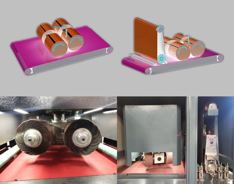 DRR-WX系列干式砂帶+滾刷+研磨機(jī)適用于各類平面板類零件表面拉絲、拋光、去劃傷、去除縱向毛刺、倒角、去氧化皮、拉毛、定厚等加工等。